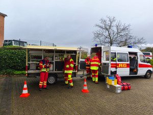 „Schön, das ihr Einsatzkräfte auch im Überraschungsfall schnell und professionell zur Verfügung steht!“ so lobte der Leiter der Öffentlichkeitsarbeit im DLRG Bezirk, Michael Dreischulte, die Arbeit der Einsatzkräfte aus Sassenberg und Warendorf sowie die Organisationsarbeit von Andre Altenau rund um den Katastrophenschutz des DLRG Bezirk Kreis Warendorf.